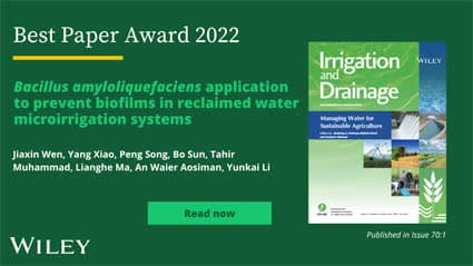 کمیسیون بینالمللی آبیاری و زهکشی بهترین مقاله سال ۲۰۲۲ مجله آبیاری و زهکشی را معرفی کرد.