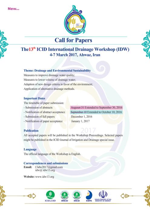 بروشور سيزدهمين كارگاه بين المللي زهكشي 2017 - اهواز