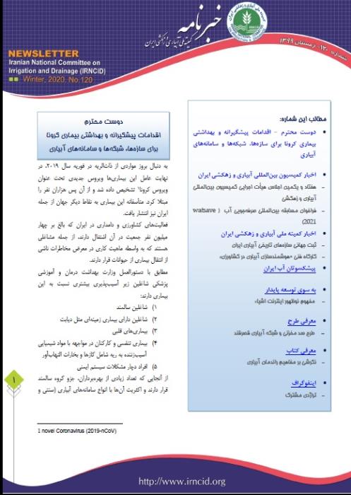 دوست محترم - اقدامات پیشگیرانه و بهداشتی بیماری کرونا برای سازهها، شبکهها و سامانههای آبیاری